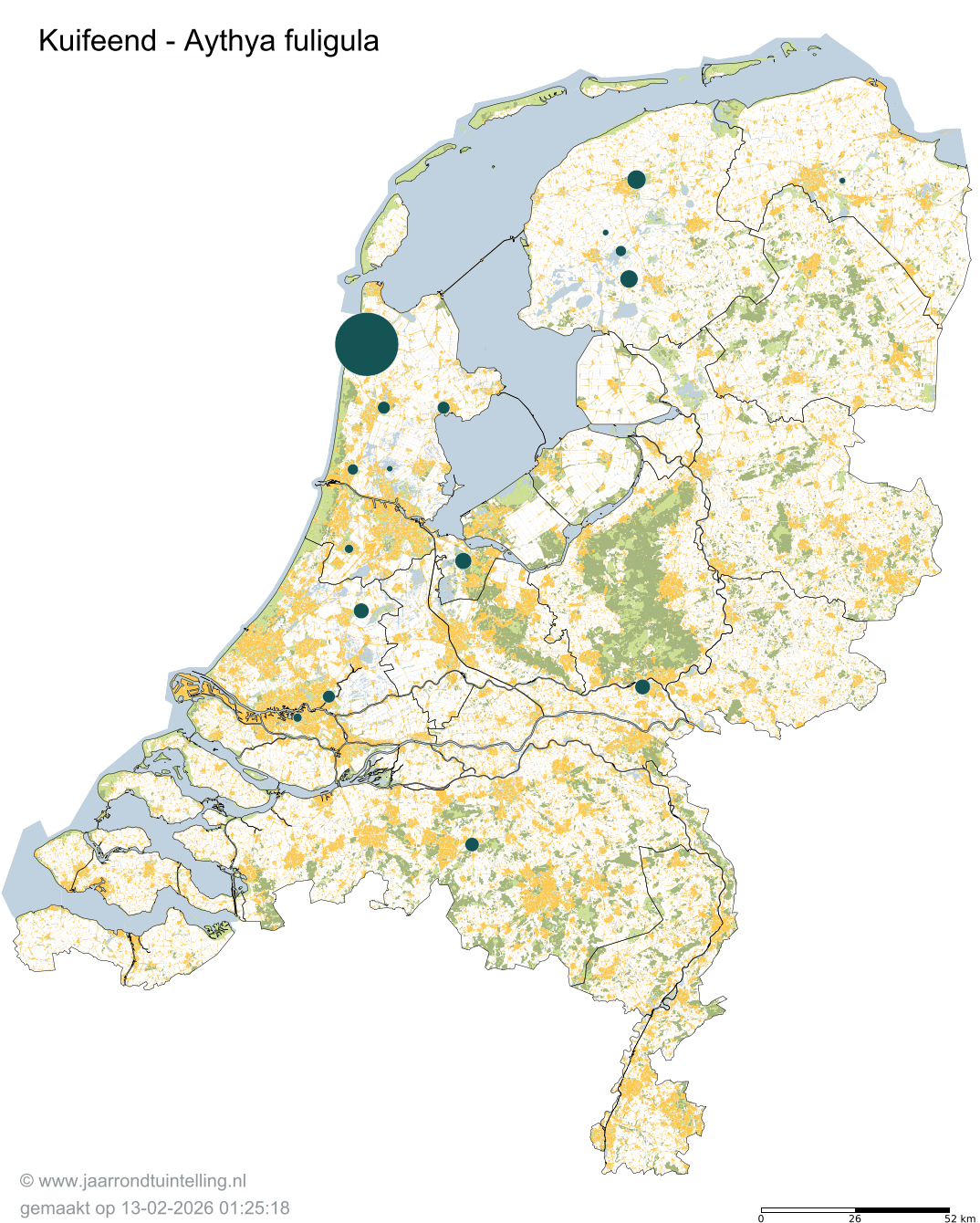 Op de kaart zie je per 5x5 km2 waar de soort is waargenomen in 2026.